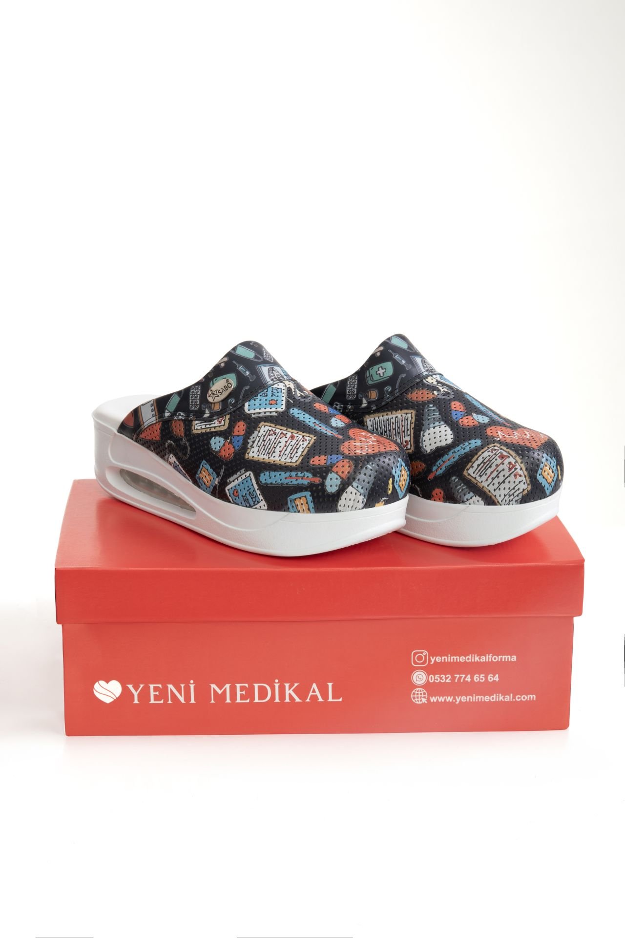Air Lacivert Hastane Desen Ortopedik Sabo Terlik