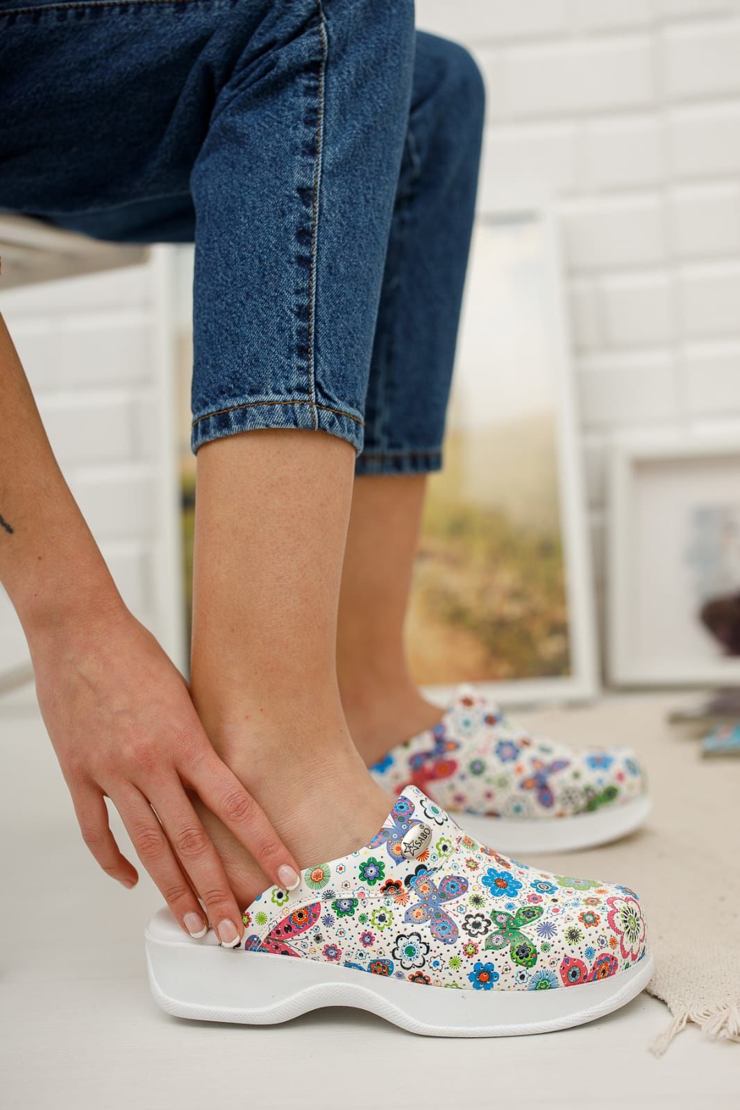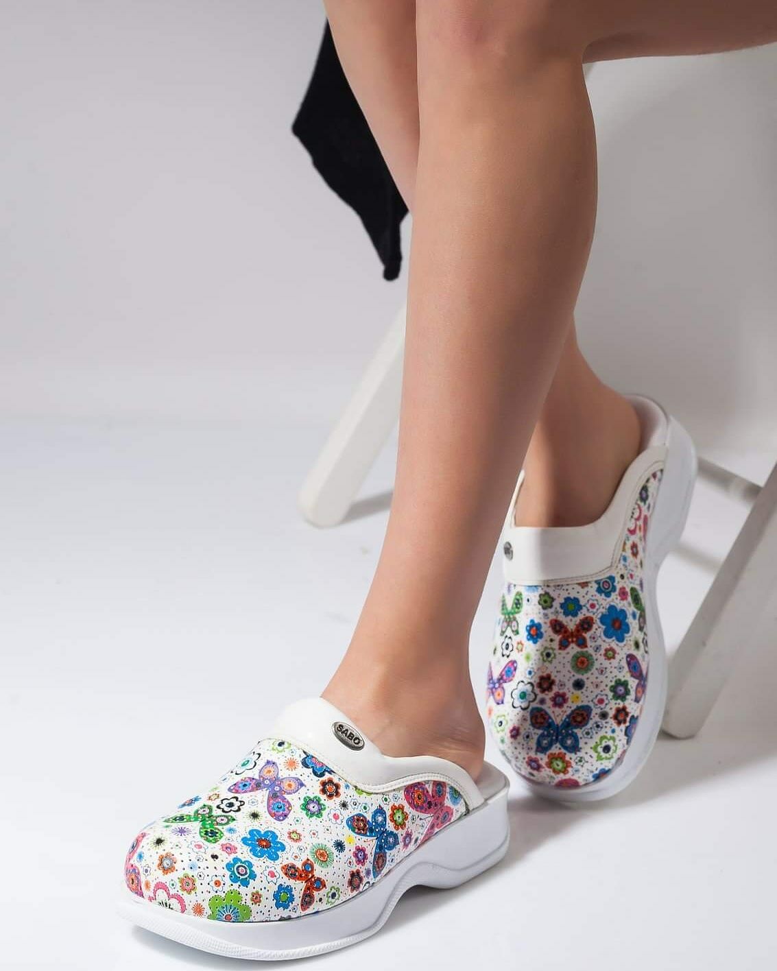 Beyaz Kelebek Desenli Ortopedik Sabo Terlik