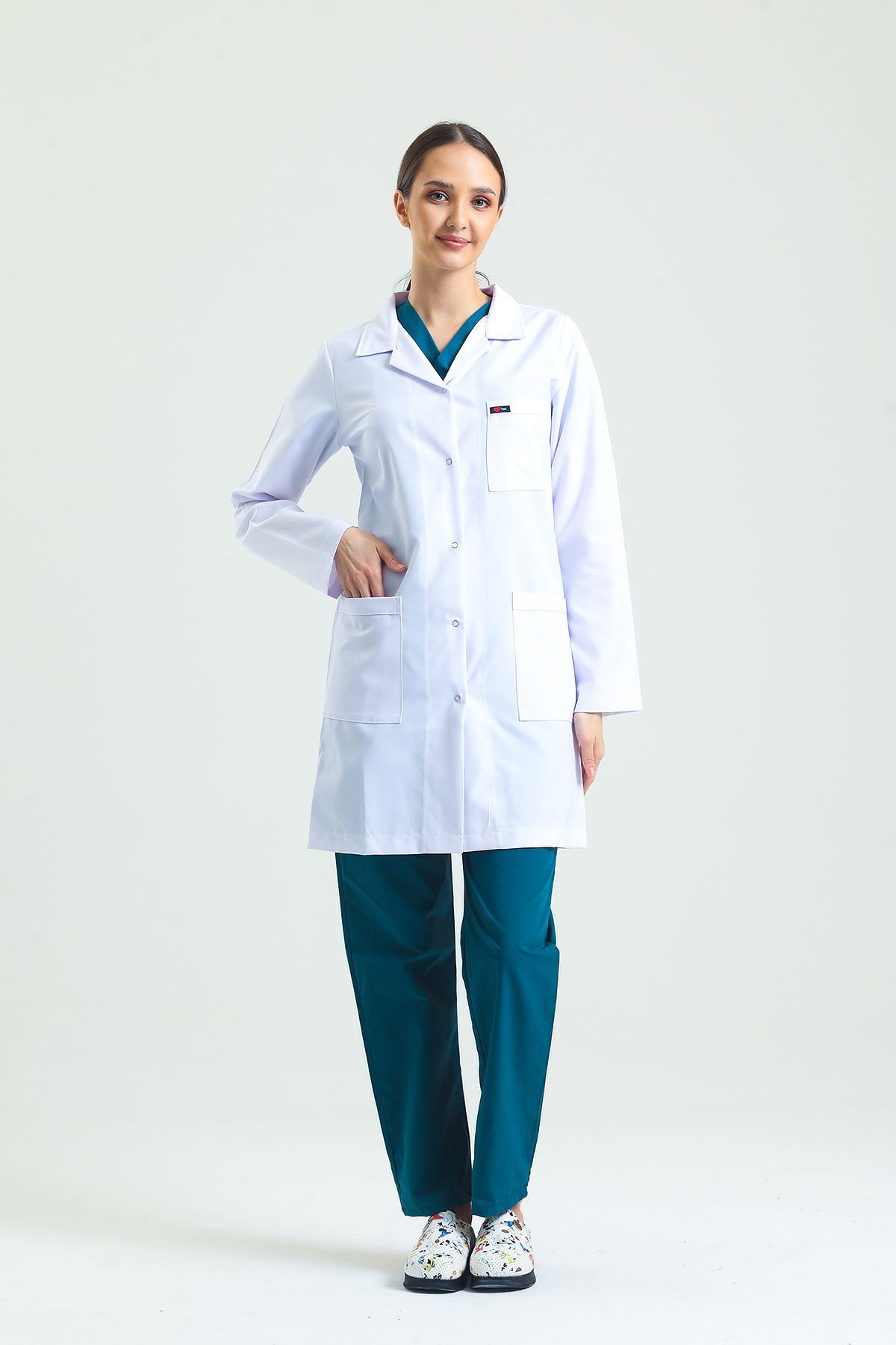 Beyaz Orta Boy Klasik Yaka Visit Önlük