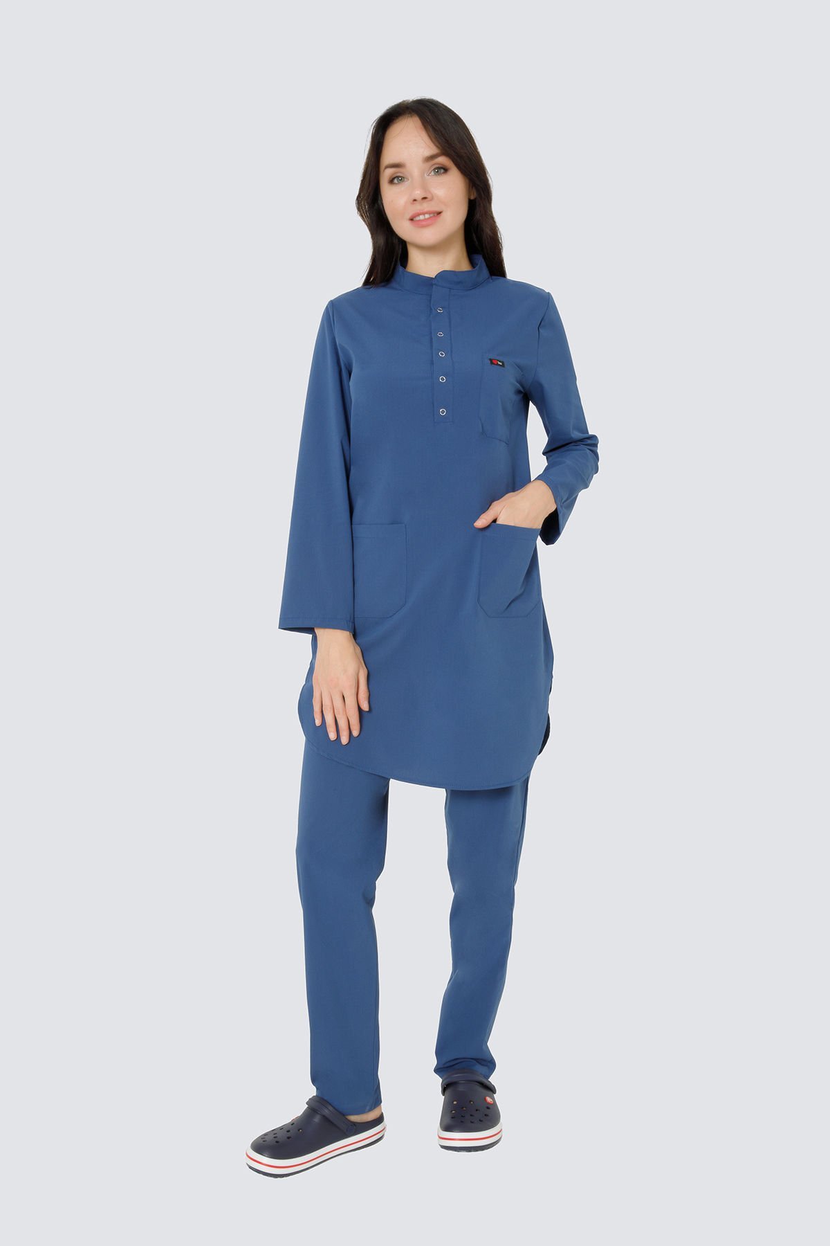 Ürünün üst boy uzunluğu 90 cm'dir. En çok tercih edilen likralı takımlarımız Yeni Medikalin kendi tasarımıdır. Hemşire, doktor, tekniker, ebe ve diğer tüm sağlık personellerinin rahat edebileceği bir üründür. Likralı Formamız tesettürlü bayanlar için özel hazırlanmıştır.Yaz kış gönül rahatlığıyla giyebilirsiniz.Tesettür ürünlerimizin etek boyu 90 cm dir. Kol hareketleriniz de, eğilip kalkarken sizi