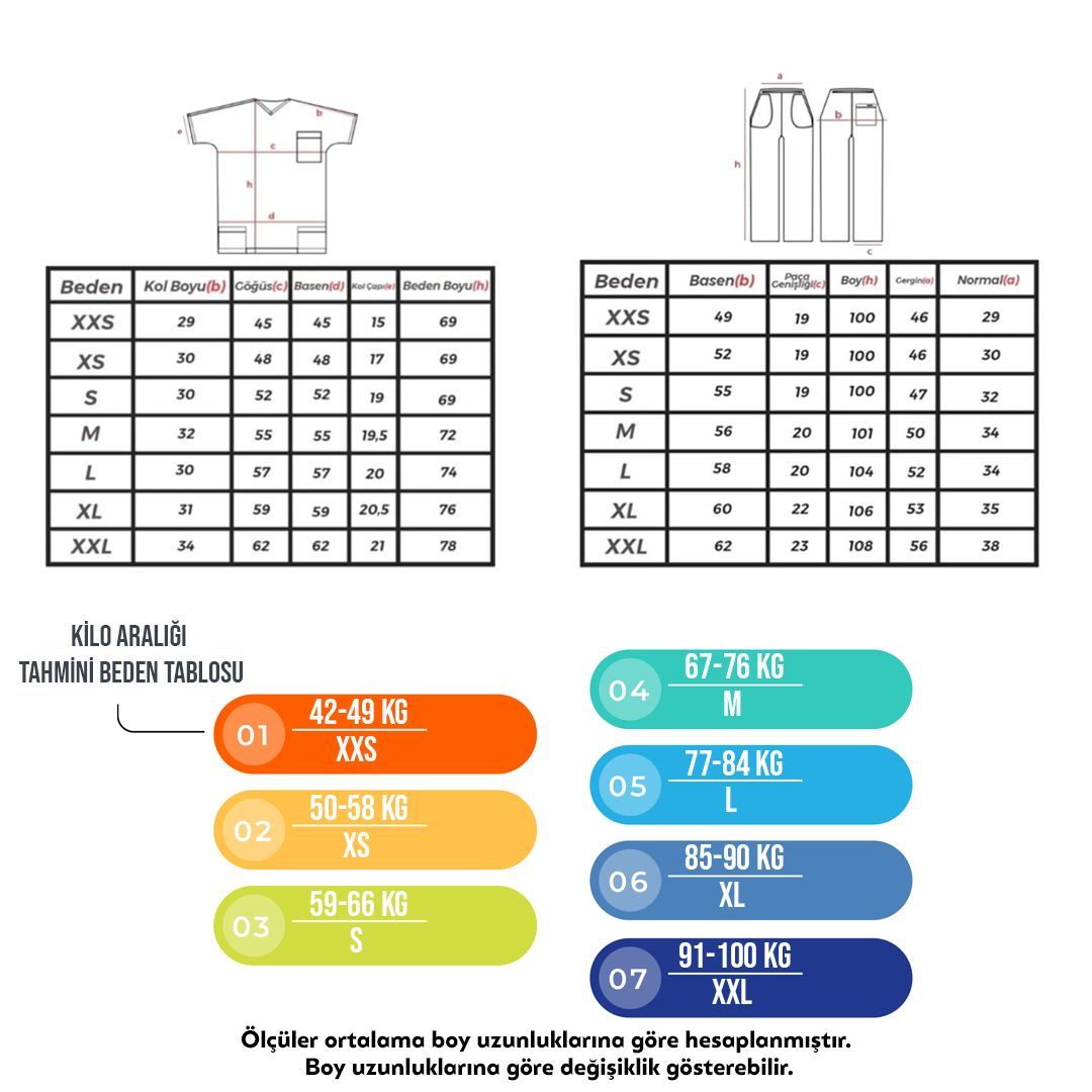 En çok tercih edilen likralı takımlarımız Yeni Medikalin kendi tasarımıdır. Ürünümüz bayan ve erkeklerin tercih edebileceği unısex bir üründür. Hemşire, doktor, tekniker, ebe ve diğer tüm sağlık personellerinin rahat edebileceği bir üründür. Kol hareketleriniz de, eğilip kalkarken sizi daha rahat hissettirecek bir yapısı vardır. Bedenlerimiz XXS dan başlayıp XXL a kadar mevcuttur.