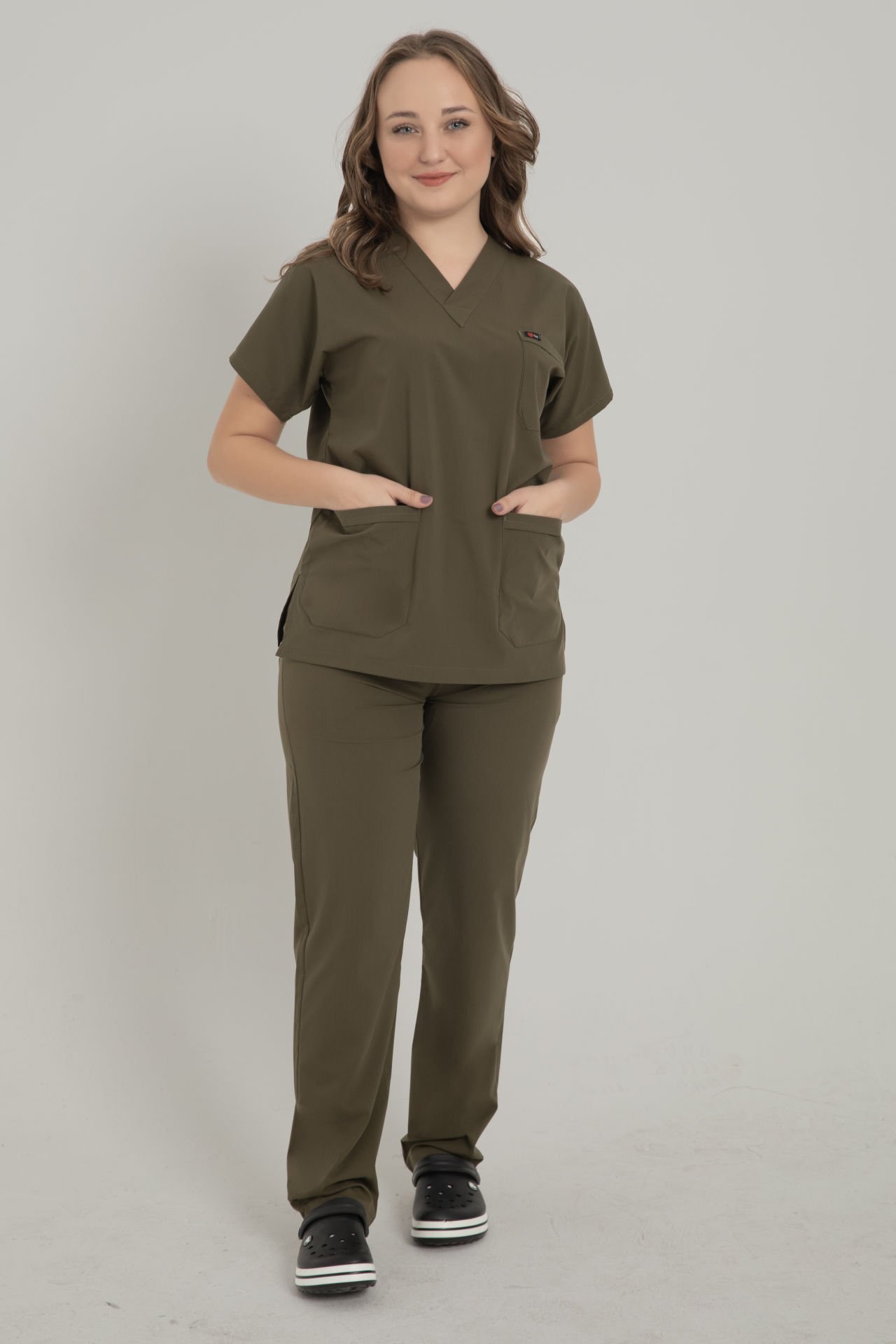 Haki Yeşili Likralı Cerrahi Takım Forma