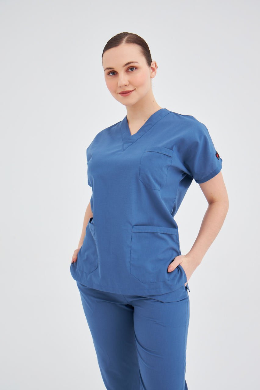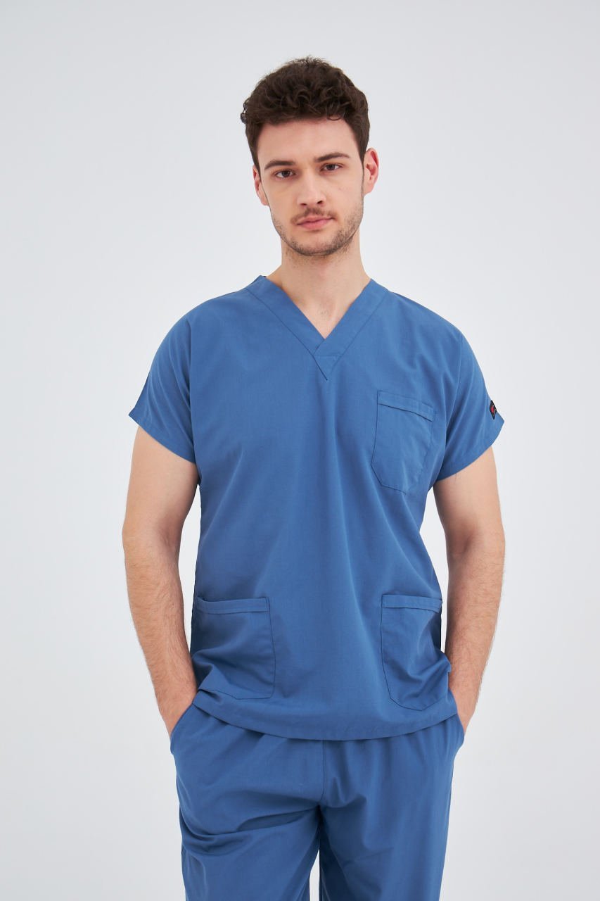 İndigo Mavi Terikoton Cerrahi Tek Üst