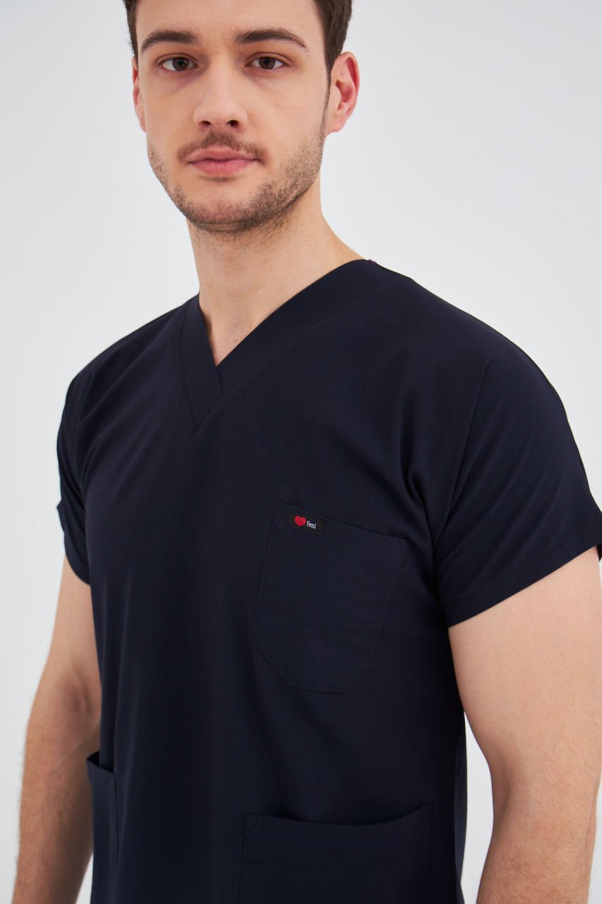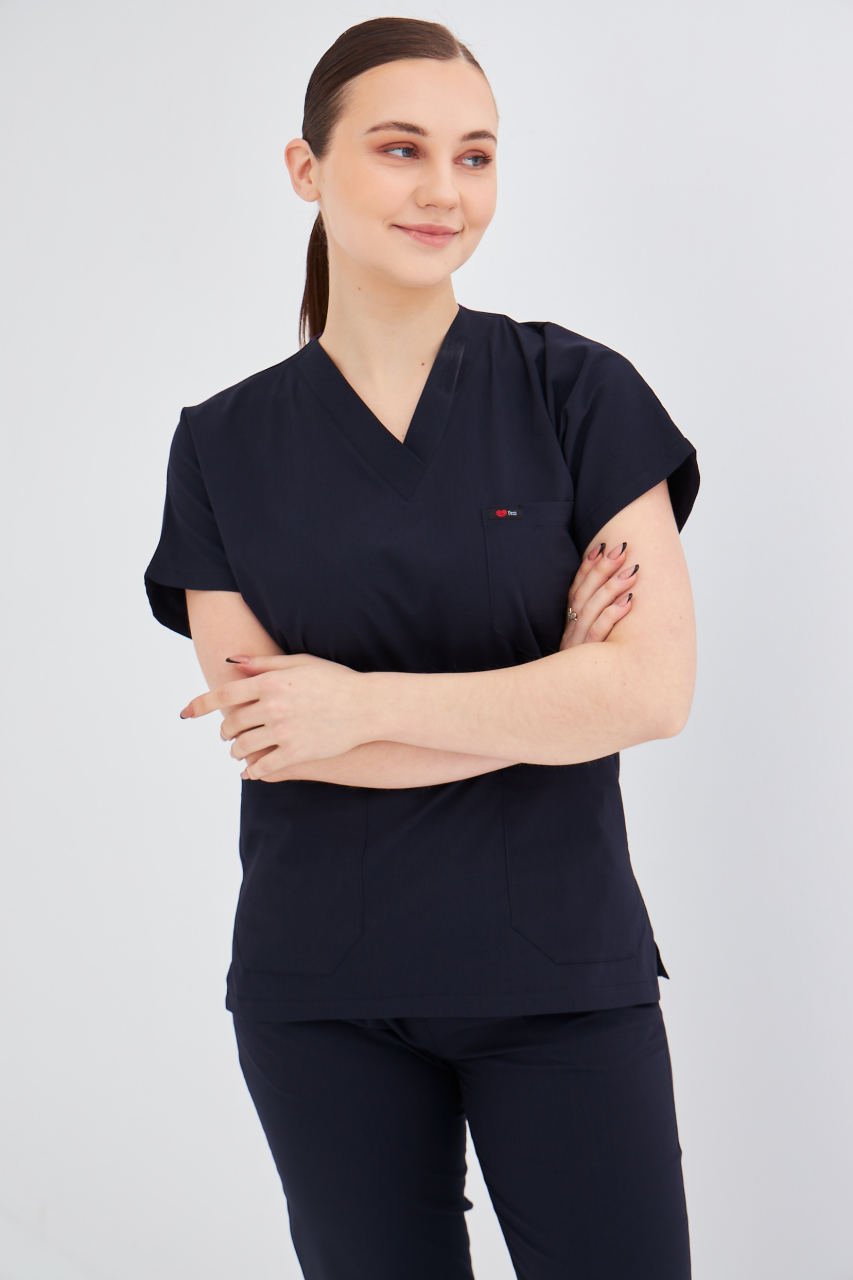 Lacivert Likralı Cerrahi Tek Üst