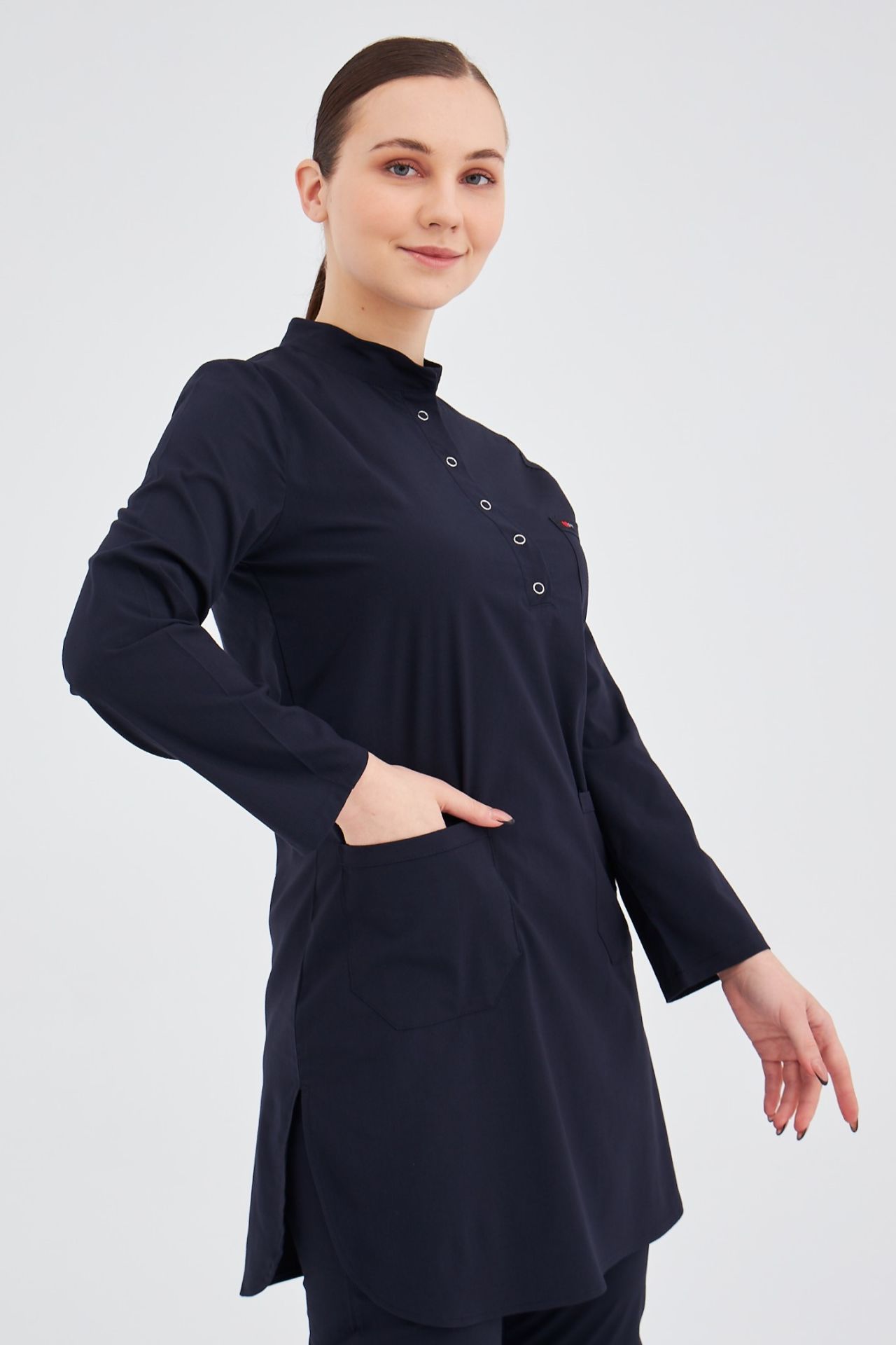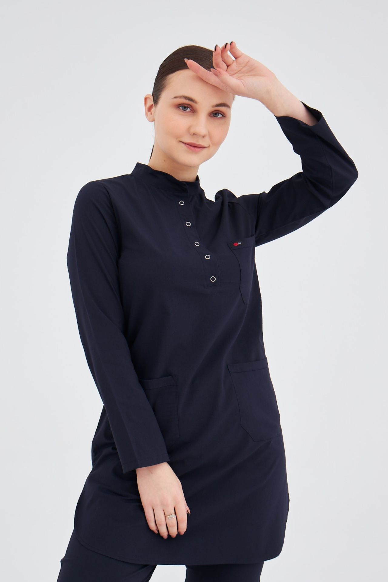 Ürünün boy uzunluğu 90 cm'dir. En çok tercih edilen likralı takımlarımız Yeni Medikalin kendi tasarımıdır. Hemşire, doktor, tekniker, ebe ve diğer tüm sağlık personellerinin rahat edebileceği bir üründür.Likralı Formamız tesettürlü bayanlar için özel hazırlanmıştır.Yaz kış gönül rahatlığıyla giyebilirsiniz Tesettür ürünlerimizin etek boyu 90 cm dir. Kol hareketleriniz de, eğilip kalkarken sizi