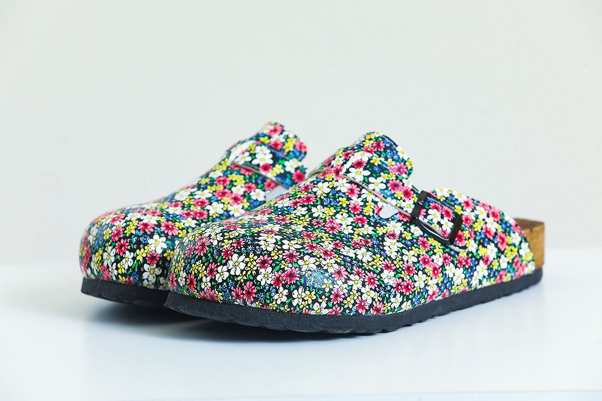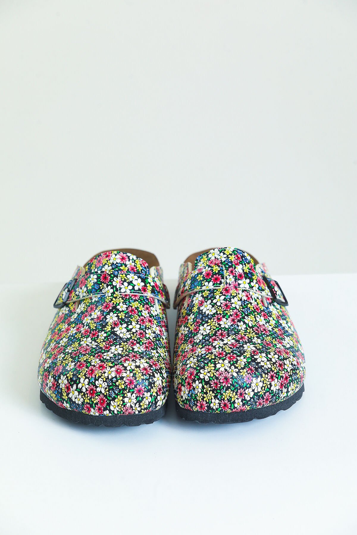 Mantar Taban Siyah Çiçek Desenli Terlik