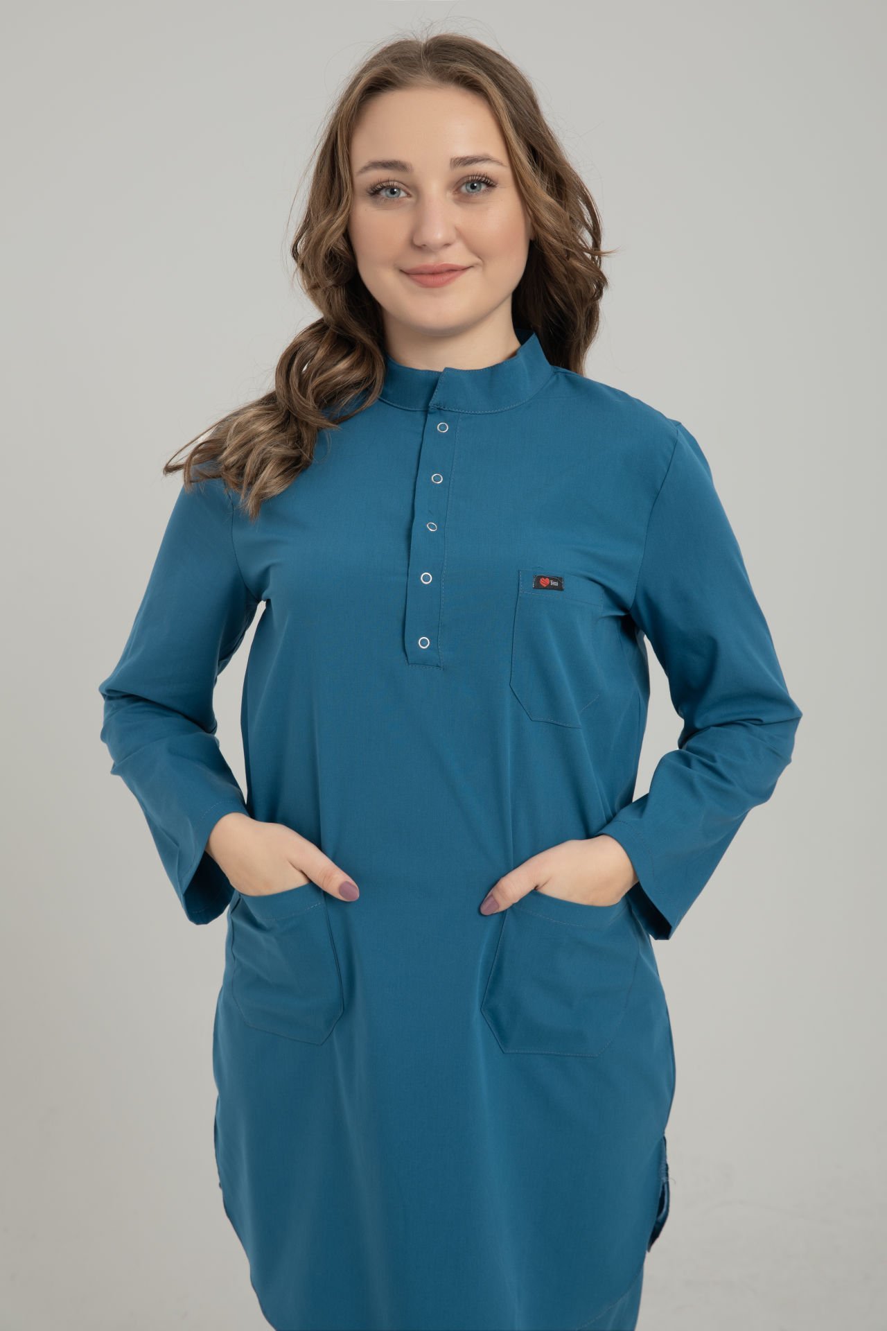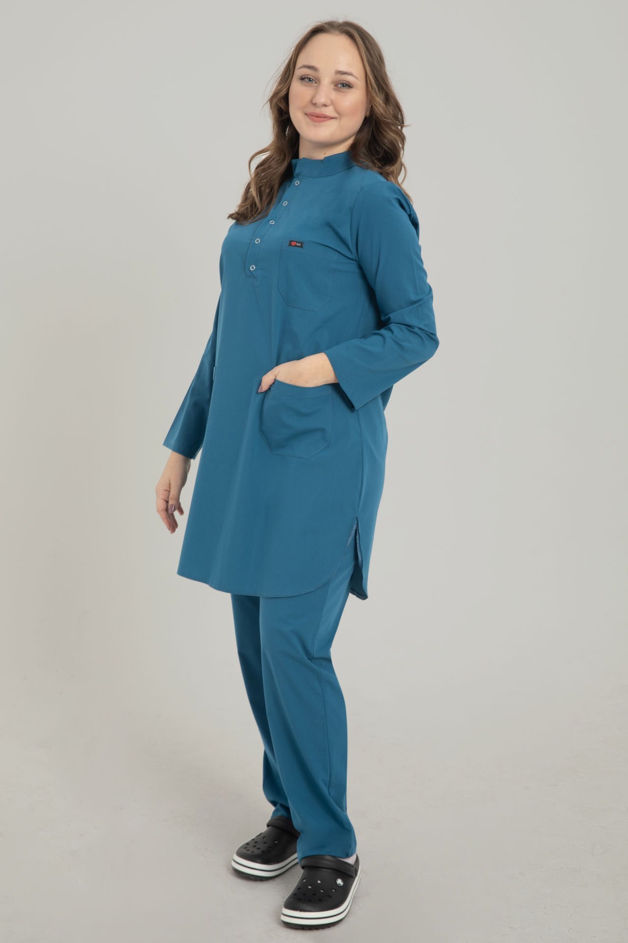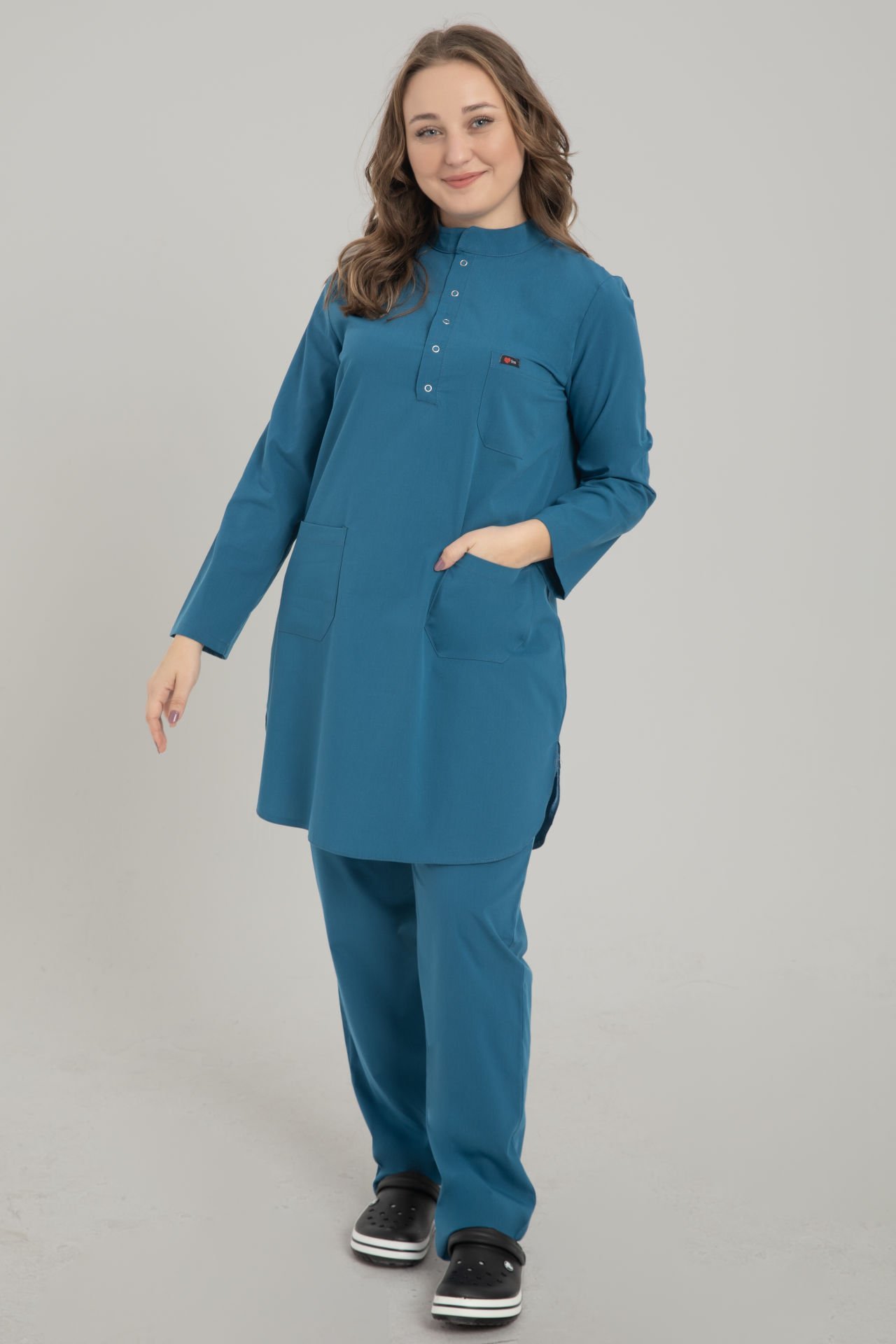 Ürünün üst boy uzunluğu 90 cm'dir. En çok tercih edilen likralı takımlarımız Yeni Medikalin kendi tasarımıdır. Hemşire, doktor, tekniker, ebe ve diğer tüm sağlık personellerinin rahat edebileceği bir üründür. Likralı Formamız tesettürlü bayanlar için özel hazırlanmıştır.Yaz kış gönül rahatlığıyla giyebilirsiniz.Tesettür ürünlerimizin etek boyu 90 cm dir. Kol hareketleriniz de, eğilip kalkarken sizi