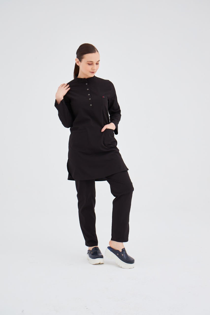 Ürünün boy uzunluğu 90 cm'dir. En çok tercih edilen likralı takımlarımız Yeni Medikalin kendi tasarımıdır. Hemşire, doktor, tekniker, ebe ve diğer tüm sağlık personellerinin rahat edebileceği bir üründür.Likralı Formamız tesettürlü bayanlar için özel hazırlanmıştır.Yaz kış gönül rahatlığıyla giyebilirsiniz Tesettür ürünlerimizin etek boyu 90 cm dir. Kol hareketleriniz de, eğilip kalkarken sizi